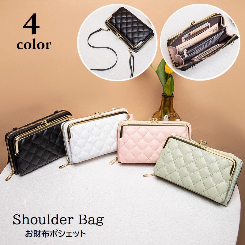ショルダーバッグ お財布ポシェット お財布ショルダー レディース 女性用 ウォレット がま口 キルティング レザー調 ファスナー 肩掛け 斜め掛け 小