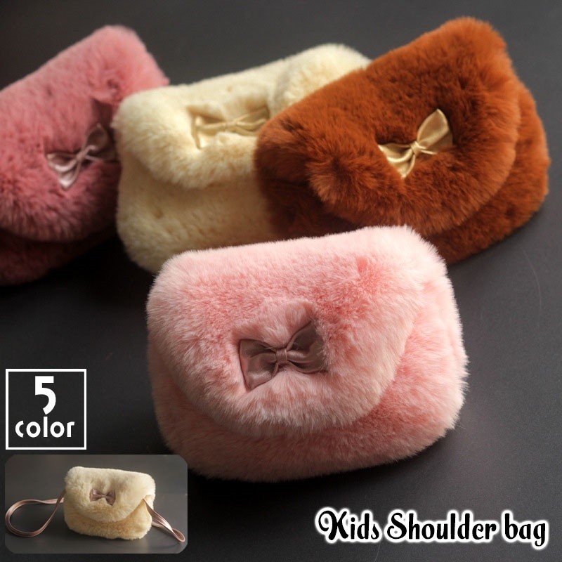 ショルダーバッグ ポシェット 子供用 キッズ 女の子 フェイクファー リボン ふわふわ 鞄 かばん カバン ミニバッグ おしゃれ かわいい お出かけ