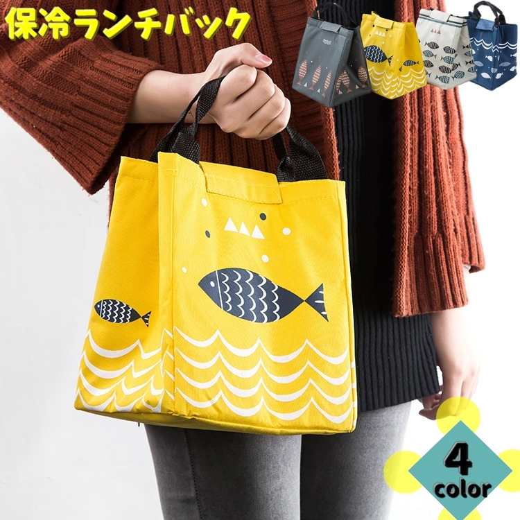 ランチバッグ 保冷バッグ クーラーバッグ 保温バッグ お弁当袋 お弁当カバン トートバック マジック テープ 角型 マリン フィッシュ 魚