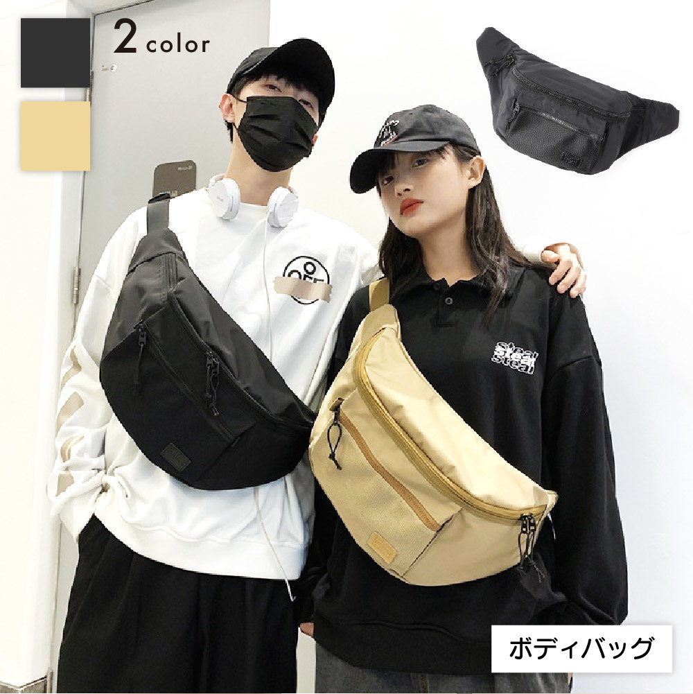 ボディバッグ ショルダーバッグ 男女兼用 メンズ レディース 大容量 斜めがけ 肩掛け ファスナー ジッパー ポケット ロゴ カジュアル シンプル ス