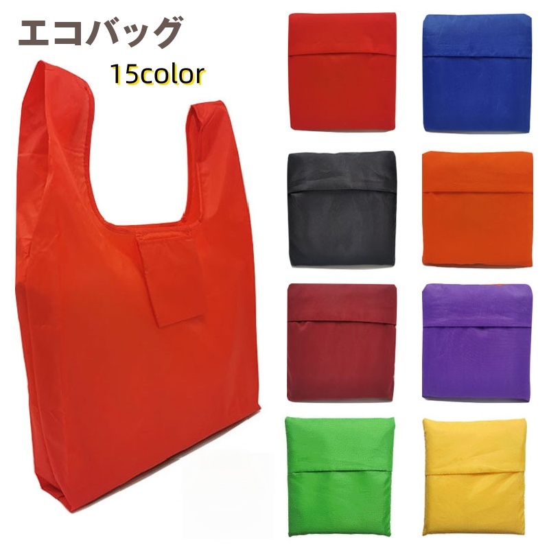 エコバッグ 折りたたみ 手提げ型 マイバッグ ショッピングバッグ 買い物袋 レジバッグ シンプル 無地 単色 コンパクト 携帯 普段使い デイリー 旅