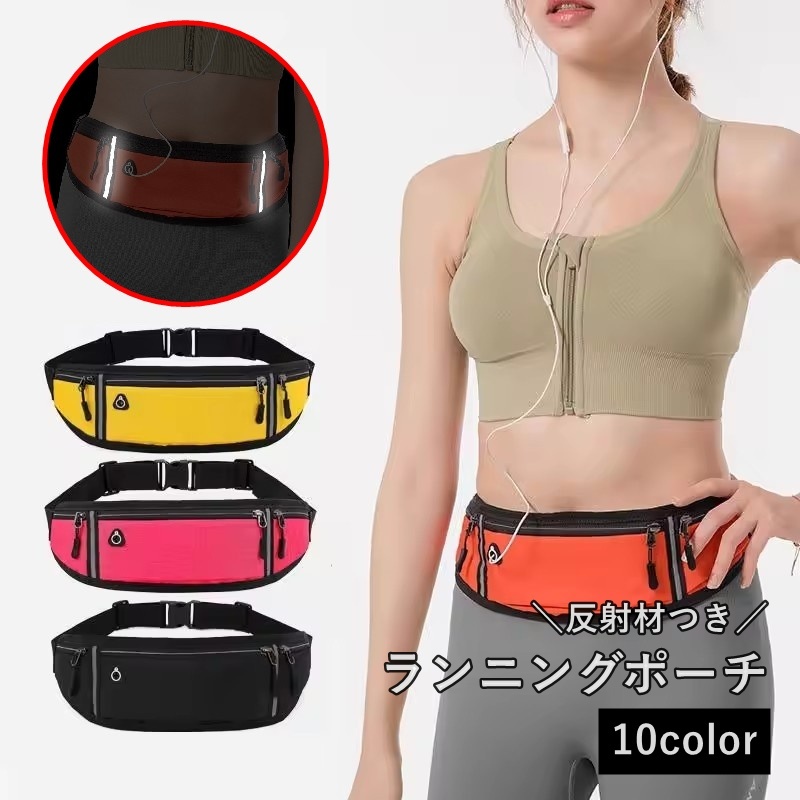 ランニングポーチ ウエストポーチ ボディバッグ 男女兼用 レディース メンズ 女性 男性 スポーツ用品 反射材 スマホ収納 ジョギング ランニング ウ