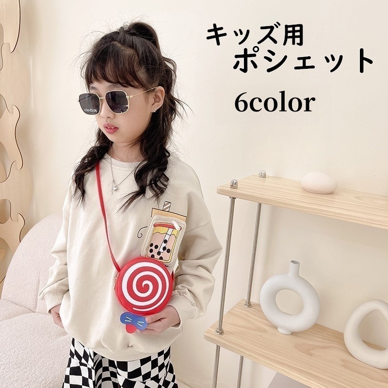 ポシェット ミニショルダー ショルダーバッグ 子供用 キッズ 女の子 鞄 カバン 斜め掛け ジッパー ファスナー キャンディー うずまき リボン かわ