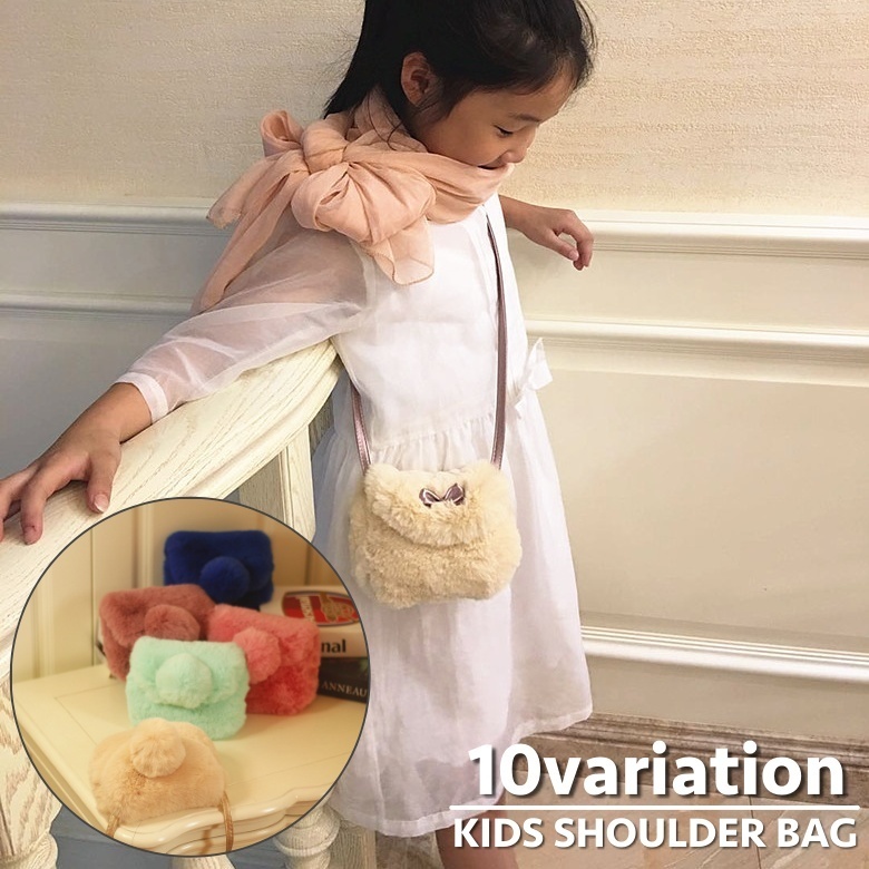 ショルダーバッグ ポシェット 斜め掛け 肩掛け ミニバッグ キッズ 子供 女の子 ふわふわ もこもこ リボン マジック テープ 鞄 かばん おしゃれ