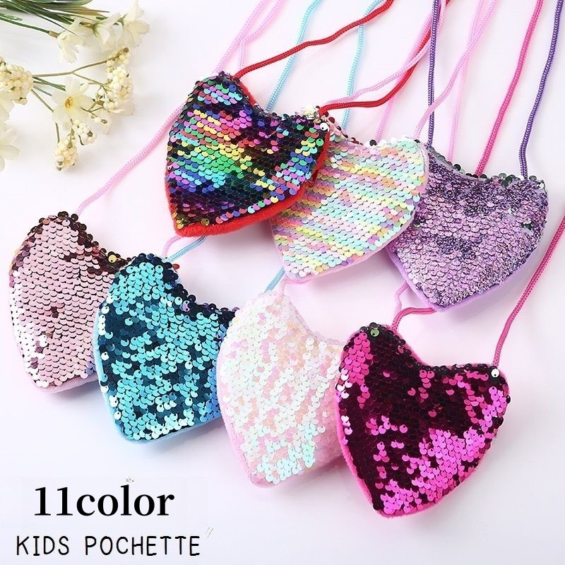 ポシェット ショルダーバッグ ミニバッグ キッズ 子供 女の子 鞄 カバン 肩掛け 斜め掛け ハート スパンコール キラキラ 小さめ コンパクト かわ
