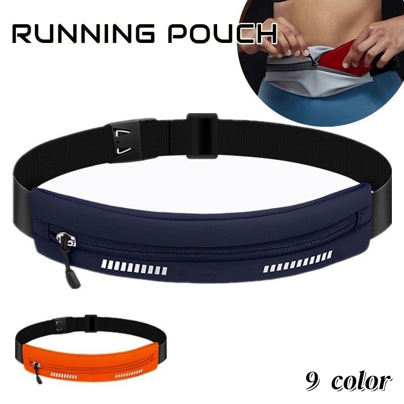 ランニングポーチ メンズ レディース 男女兼用 ウエストポーチ 軽量 コンパクト 撥水 無地 反射材付き サイズ調整可能 スマホ 小物 マラソン ウォ