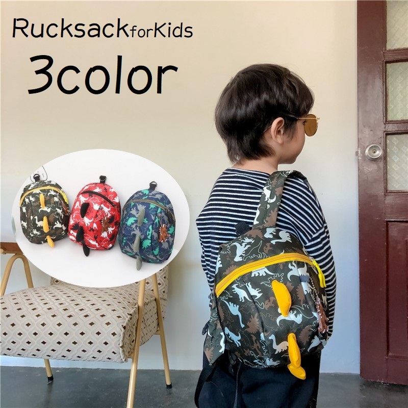 リュックサック キッズ 子供 男の子 女の子 男女兼用 鞄 カバン バックパック ポケット付き ファスナー チャック 恐竜 ダイナソー 背びれ付き ま