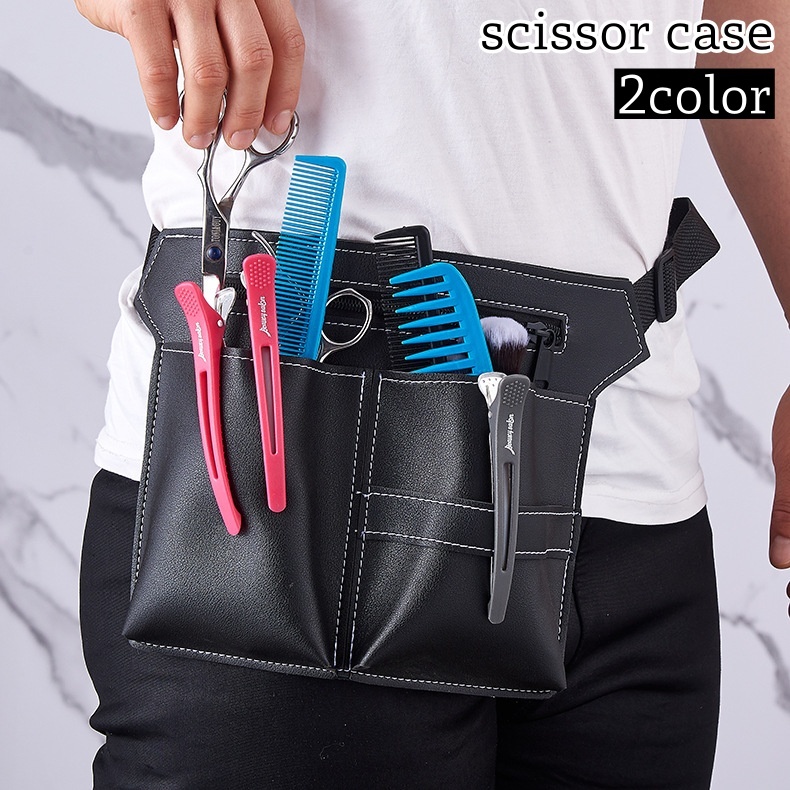 シザーケース シザーバッグ ツールケース フェイクレザー レザー調 ウエストバッグ 男女兼用 美容師 理容師 理髪師 大容量 シザーポケット 多機能バ