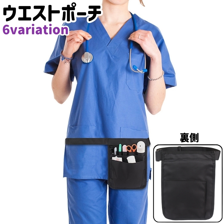 ウエストポーチ ナースポーチ レディース メンズ 男女兼用 エプロンバッグ 縦型 チャック ファスナー 黒 青 紫 ピンク オックスフォード シンプル