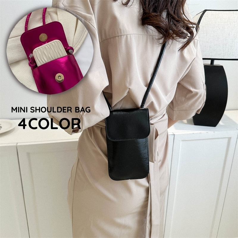 ミニショルダーバッグ ポシェット スマホポーチ レディース レザー調 斜めがけ 肩掛け 軽量 小物収納 無地 単色 シンプル 縦型 薄型スリム かわい