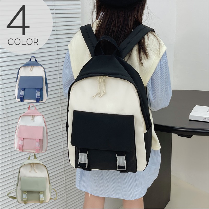 リュックサック 子供用 バックパック キッズ ジュニア バック 鞄 大容量 バイカラー 無地 女の子 男の子 フラップポケット ファスナー たっぷり収