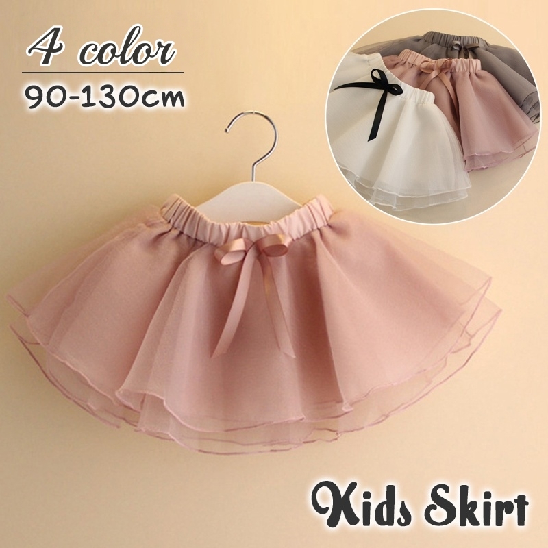 スカート 子供服 子ども用 キッズ ベビー 女の子 シフォン チュール ミニ丈 チュチュ風 リボン 透け感 おしゃれ かわいい キュート ガーリー ふ