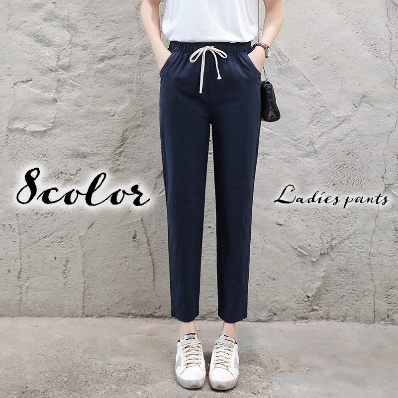 クロップドパンツ 9分丈 パンツ レディース 女性 ボトムス ズボン ウエストゴム 紐付き リネン調 麻風 シンプル 無地 カジュアル おしゃれ ナチ