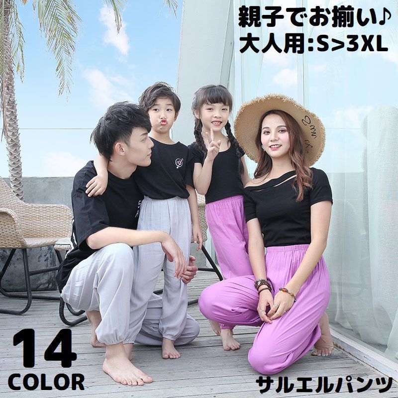 親子お揃い ペアルック ロングパンツ サルエルパンツ レディース メンズ ママ パパ 大きいサイズ ゆったり 部屋着 家族 リンクコーデ