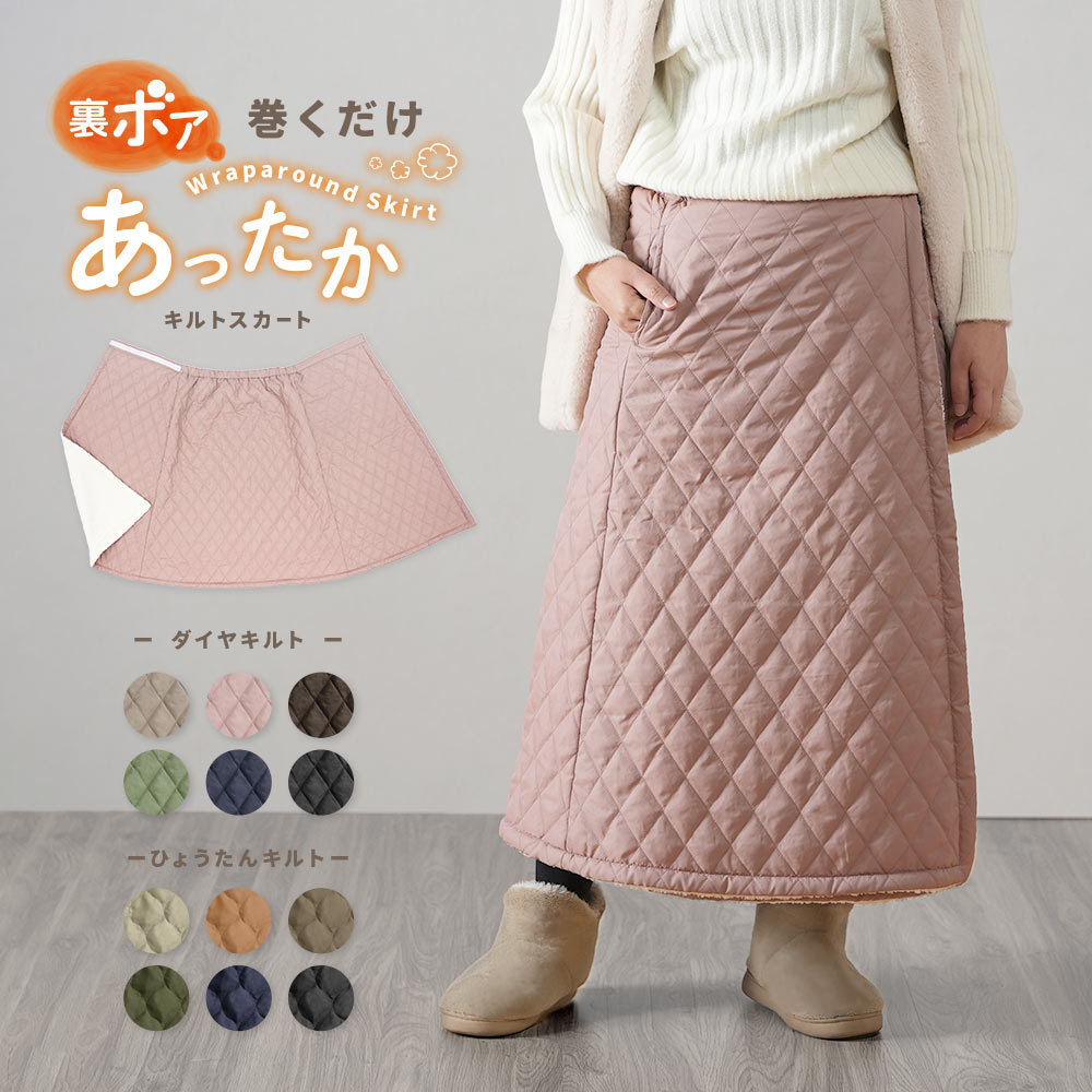 中綿キルト 裏ボア 巻きスカート 冬 あったか 暖 スカート レディース 3way ラップスカート キルトスカート キルティング スカート ひざ掛け