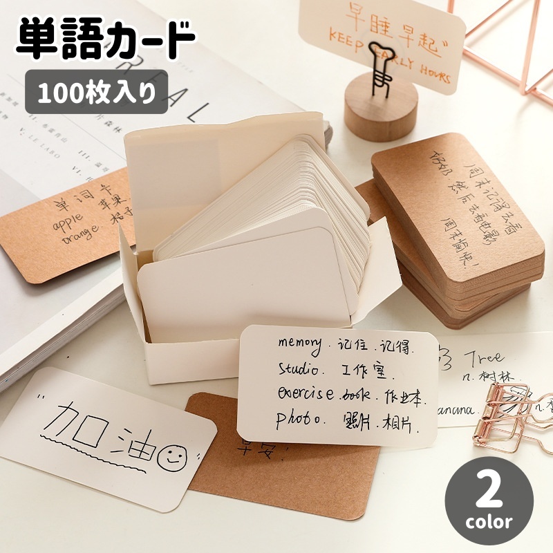 単語カード 100枚入り メモカード メッセージカード 無地 シンプル 長方形 メモ紙 暗記カード DIY 文具 文房具 事務用品