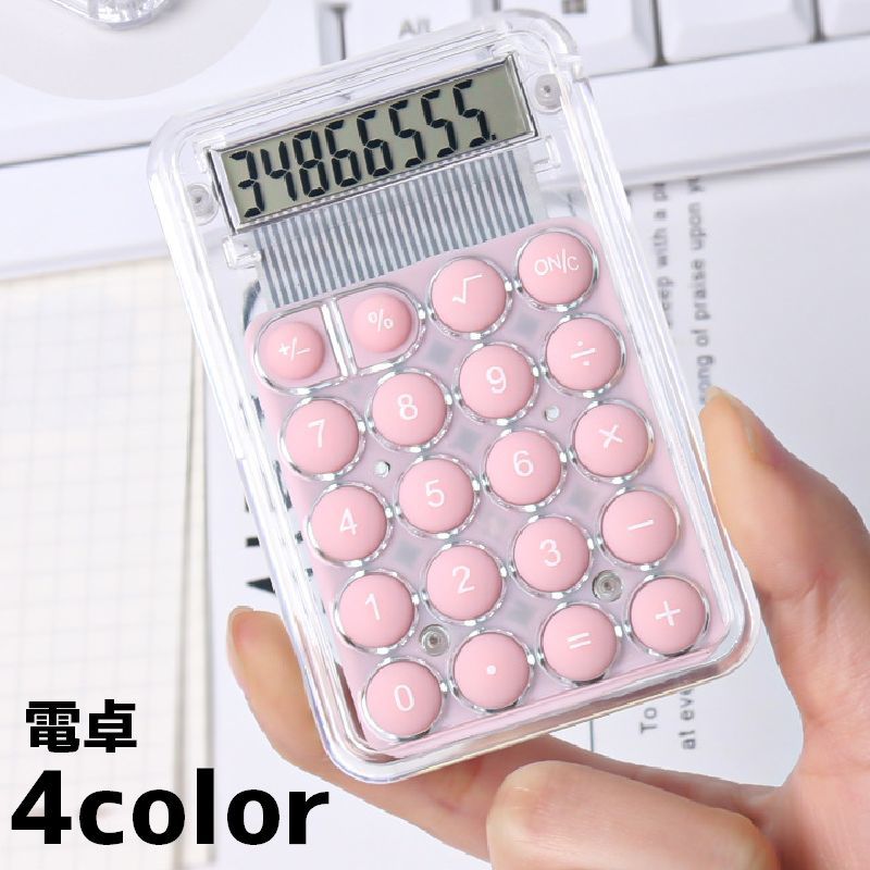 電卓 計算機 電池式 文房具 文具 オフィス 学校 事務用品 卓上 持ち歩き コンパクト かわいい 丸ボタン 見やすい 勉強 計算 便利
