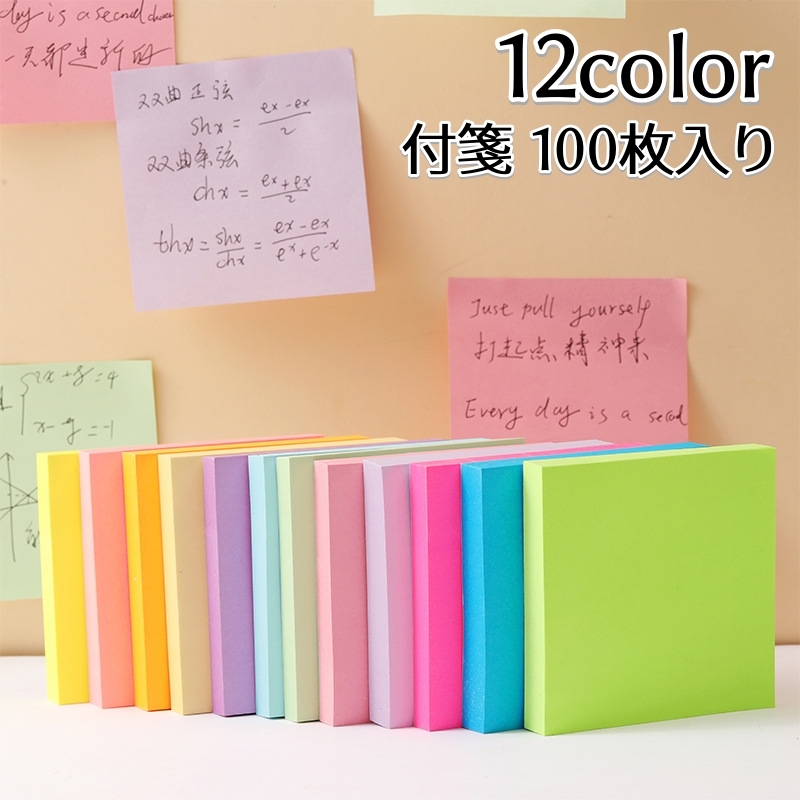 付箋 100枚入り ふせん 粘着 無地 メモ帳 忘備録 便箋 電話メモ 伝言メモ メッセージ シンプル カラバリ豊富 便利 文具 文房具 オフィス用品