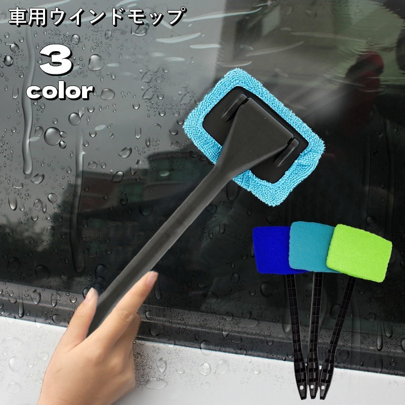 ウインドモップ 車用 ガラス拭き 窓拭き 柄付き 車窓 フロントガラス 洗車道具 取り外し可能 カー用品 ハンディモップ 清掃 曇り取り お手入れ簡単