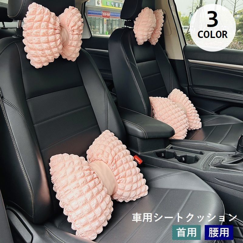 車用クッション シートクッション 首用 腰用 単品 1個 リボン型 カー用品 カーアクセサリー 首枕 ネックパッド ネックピロー 腰当て ランバーサポ