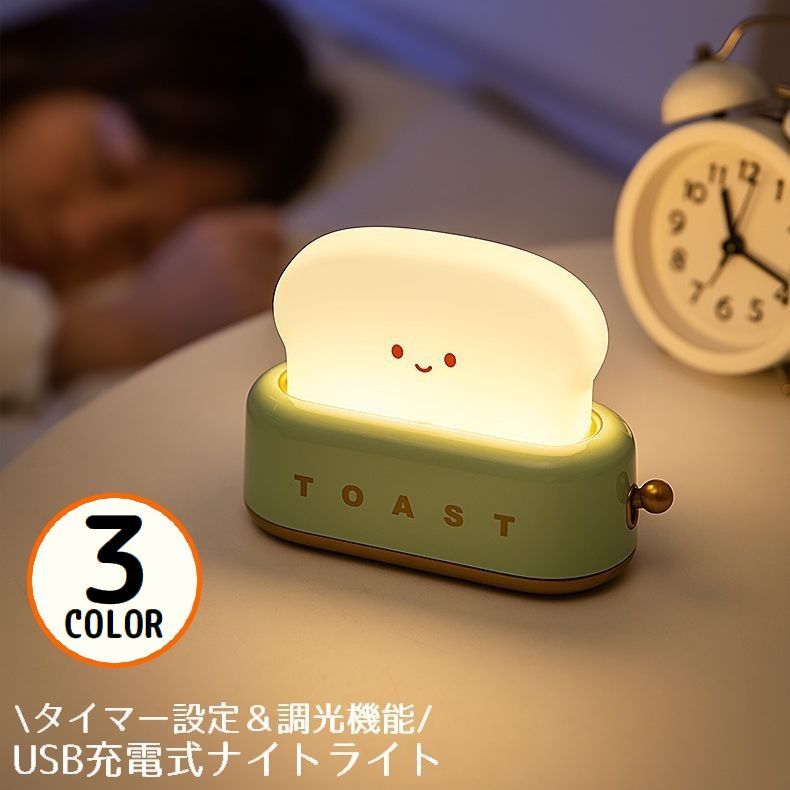 ナイトライト テーブルランプ LED USB充電式 卓上 コードレス トースター型 授乳 間接照明 調光 寝室 ベッドサイド デスク リチウム