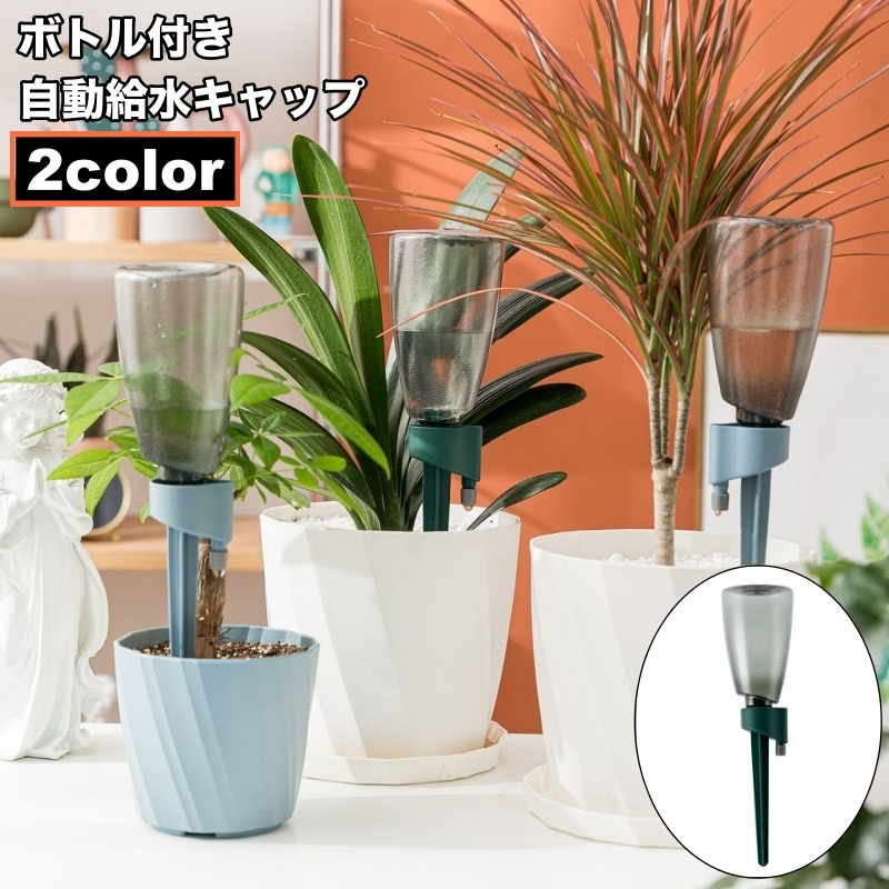 自動給水キャップ 自動水やり器 ボトル付き ペットボトル対応 植木鉢 植物 室内 自動散水用具 ガーデニング用品 水切れ対策 園芸 観葉植物 ガーデニ