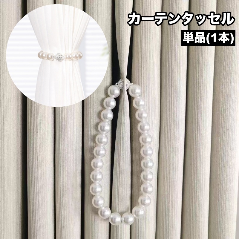 カーテンタッセル 1本 単品 磁石付き マグネット式 カーテンホルダー 留め具 カーテンアクセサリー ラインストーン ビジュー パール調