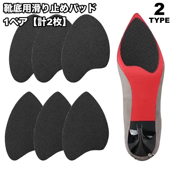 靴底用滑り止めパッド 1ペア 計2枚 滑り止めステッカー 靴ケア用品 靴アクセサリー 粘着式 つま先用 貼るだけ ハイヒール パンプス スリップ対策