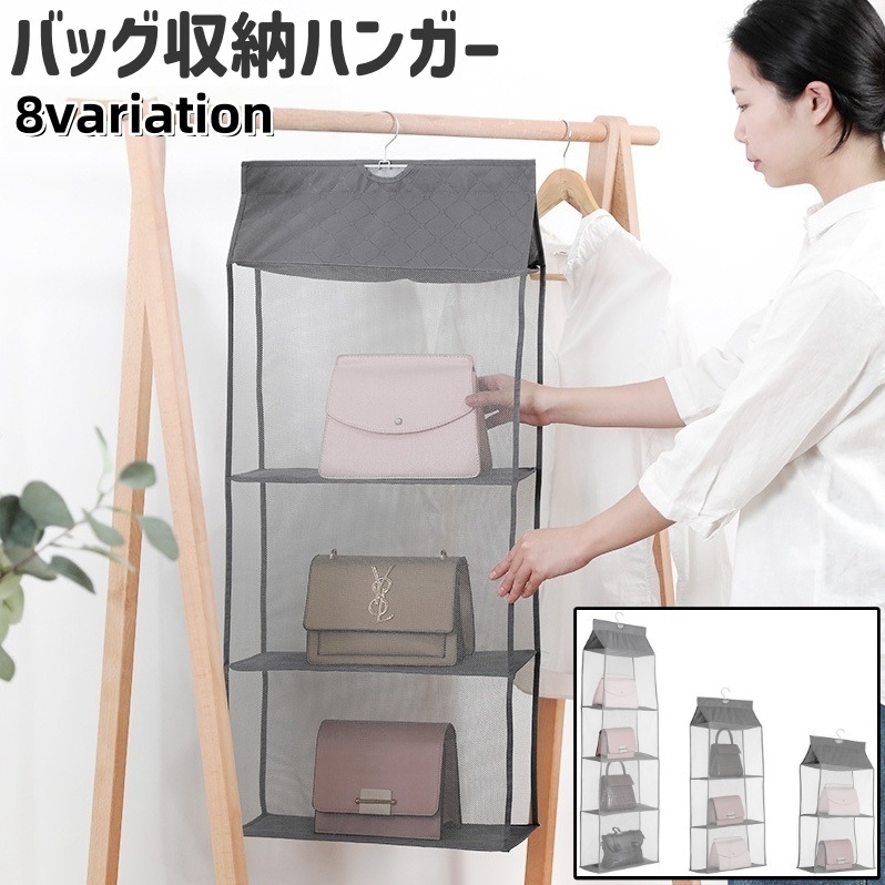 バッグ収納ハンガー ハンガー 吊り下げ式 2段 3段 4段 チュール メッシュ シンプル 省スペース バッグ カバン 鞄 収納 保管 クローゼット グ