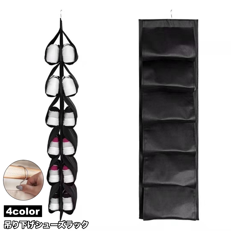シューズラック 収納 靴 スニーカー 6足 吊り下げ シューズハンガー 玄関 クローゼット 省スペース 整理整頓 便利 吊るす 型崩れ防止 シューズボ
