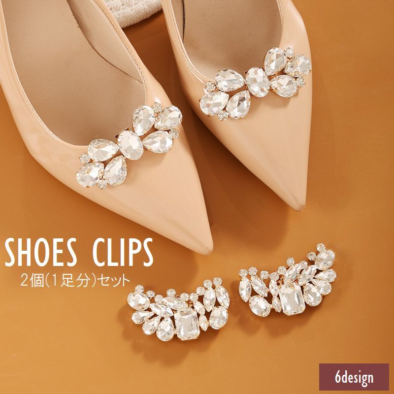 シューズクリップ 2個セット 1足分 レディース ラインストーン ビジュー シュークリップ キラキラ おしゃれ きれいめ 上品 華やか 結婚式 入学式
