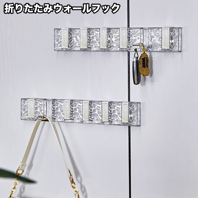 ウォールフック 6連 折りたたみ式 90 壁掛け クリア 透明 吊り下げ 引っ掛け 壁面収納 小物掛け 帽子掛け 鍵掛け 省スペース インテリア