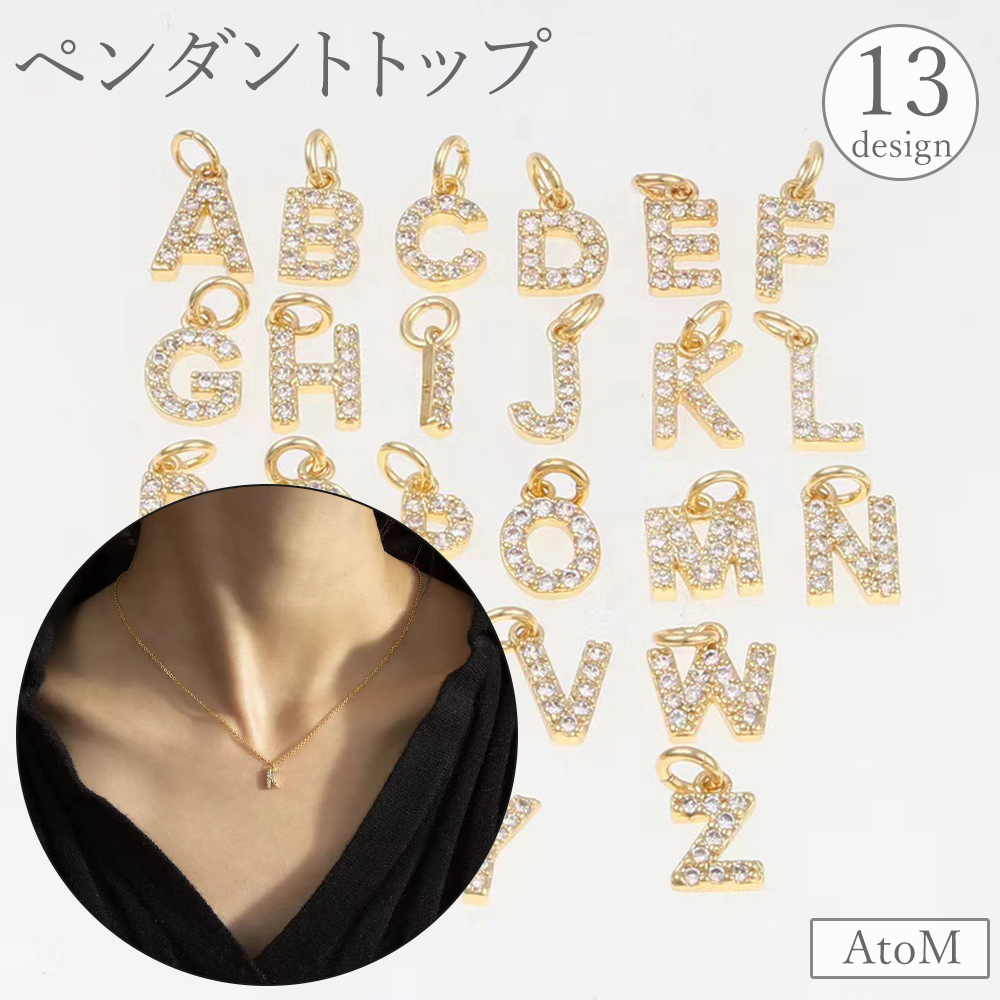 ペンダントトップ ペンダントヘッド AtoM レディース 女性 アクセサリーパーツ DIY 自作 チャーム アルファベット イニシャル ラインストーン