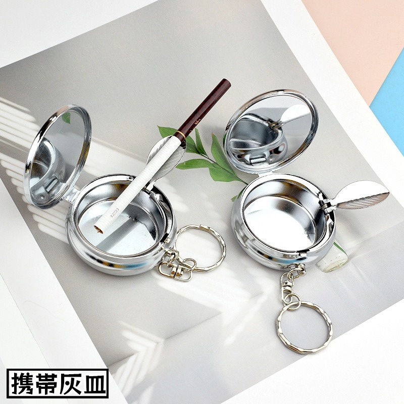 携帯灰皿 キーリング キーホルダー 丸型 フタ付き 蓋 ふた コンパクト ミニサイズ ポータブル 煙草置き タバコ置き 吸い殻入れ 喫煙用具 たばこ用