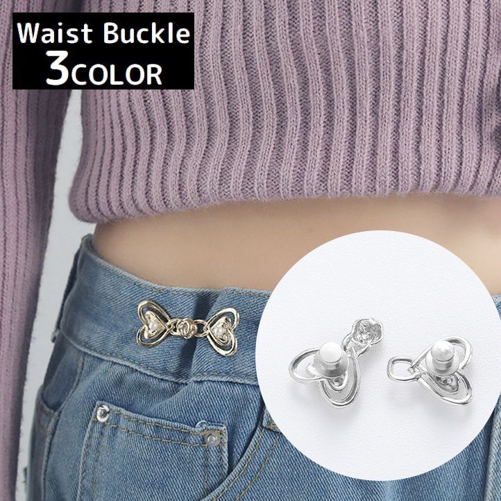 ウエストバックル ウエストアジャスター ピン留めクリップ ウエスト調整 ハート ジーンズ デニムパンツ ズボン スカート お直し