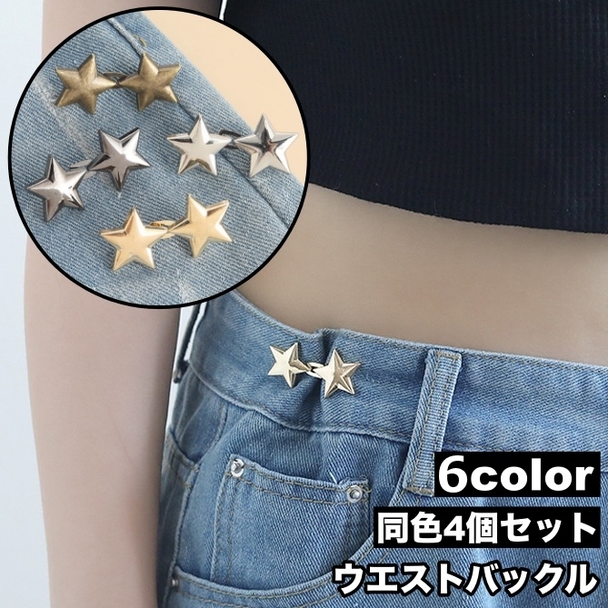 ウエストバックル 4個セット ウエストアジャスター ウエスト調整 星 スター フック ジーンズ デニム ズボン スカート ボトムス お直し 簡単 縫製