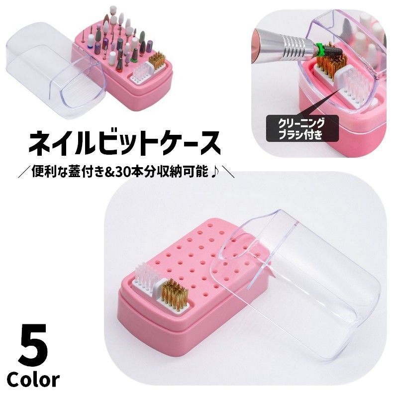 ネイルビットケース ネイルケース 収納ケース フタ付き クリーニングブラシ付き クリーナー ブラシ ソフト ハード ネイル用品 ネイルマシン ドリル