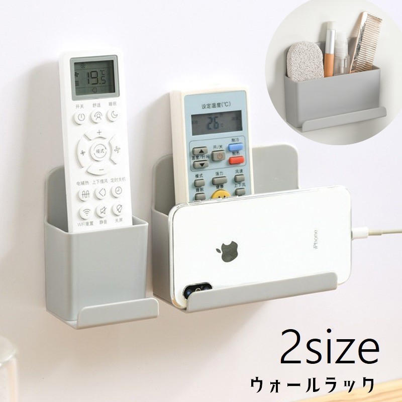 ウォールラック リモコンラック 壁掛け収納 ウォールケース リモコンスタンド スマホホルダー 壁面収納 整理整頓 小物入れ 粘着テープ式 穴あけ不要