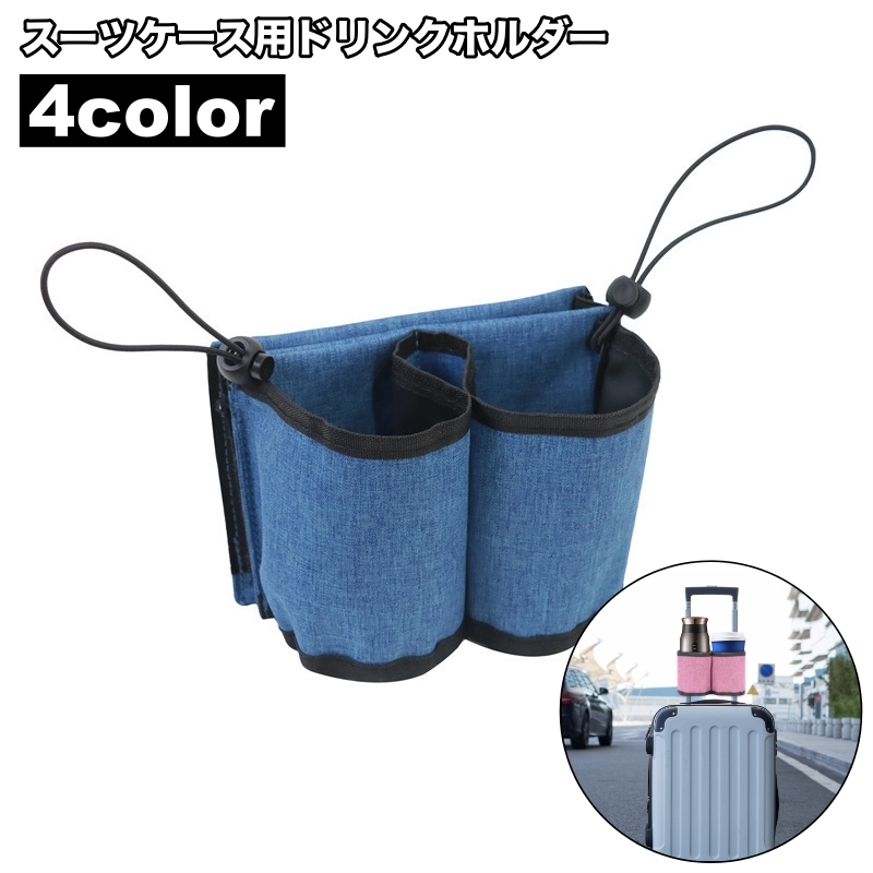 ドリンクホルダー スーツケース用 カップホルダー ポケット付き キャリーケース用 取付け簡単 小物入れ 飲み物ホルダー メッシュ ドローコード 旅行
