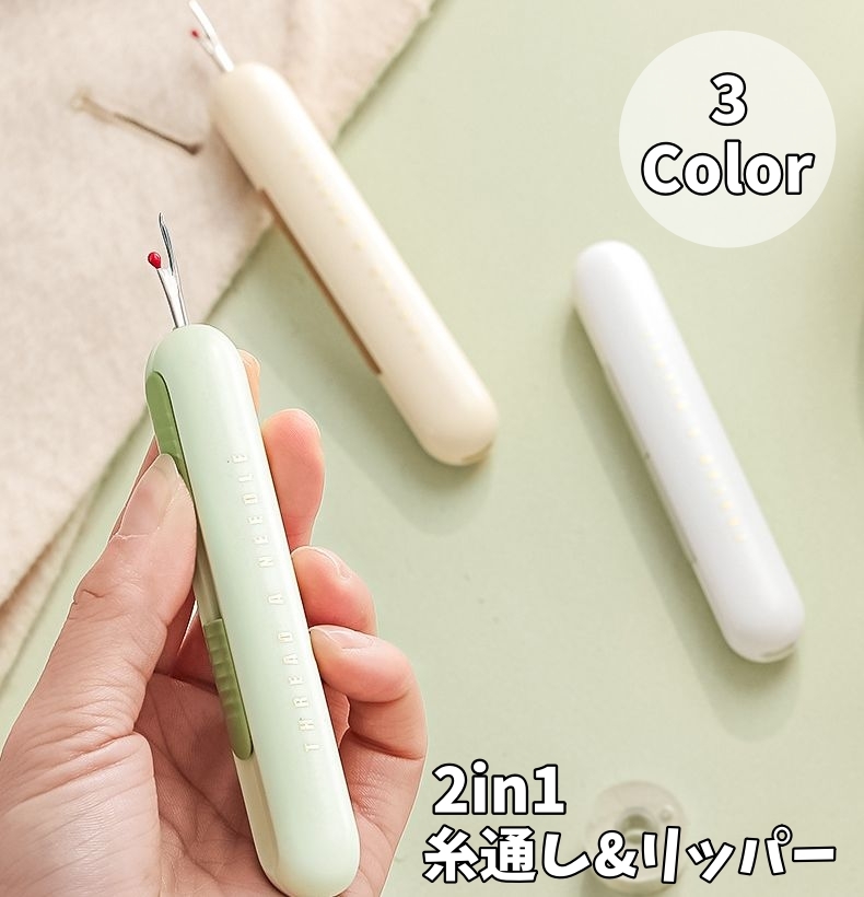 糸通し リッパー 2in1 手芸用品 糸切リッパー 縫い糸通し 裁縫道具 DIY ダブル ソーイング スライド式 便利グッズ 手芸 裁縫 ハンドメイド