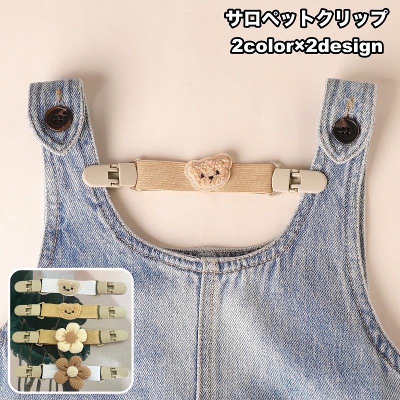 サロペットクリップ サスペンダー ズレ落ち防止クリップ ベビー キッズ 子供用 花 フラワー クマ オーバーオール 肩紐 肩ひも 固定クリップ ショル