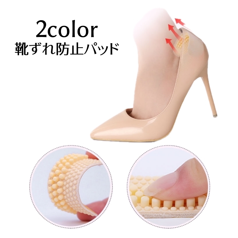 靴ずれ防止パッド かかとパッド 2枚セット 無地 肌色 黒 粘着式 靴脱げ防止 痛み対策 かかと保護 パカパカ防止 クッション 快適 やわらかい ハイ