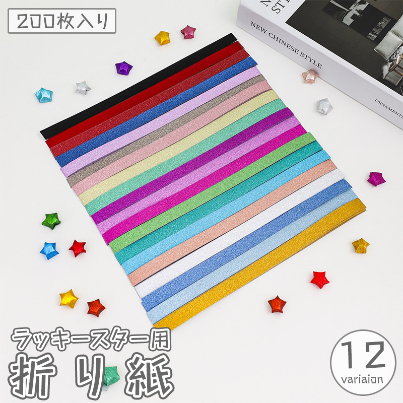 ラッキースター用折り紙 200枚セット 星折り紙 立体星 おりがみ 細い 長い カラフル ラメ グリッター 文具 工作 手芸 手づくり ハンドメイド