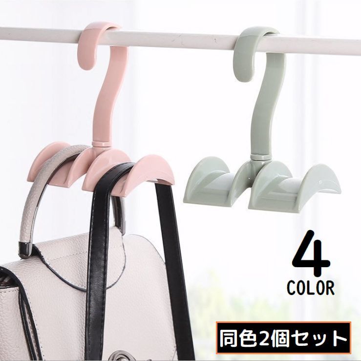 バッグハンガー 2個組 カバン掛け 吊り下げ 360度回転 収納 鞄 スカーフ ネクタイ ベルト クローゼット 整理 型崩れ防止
