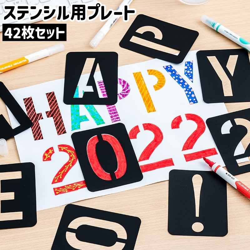 ステンシル用プレート 42枚セット 42枚入り ステンシルシート テンプレート アルファベット 英字 大文字 数字 シンプル おしゃれ DIY 装飾