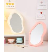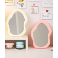 卓上ミラー 卓上鏡 壁掛け メイクミラー かがみ 化粧鏡 持ち運び 単色 ラウンド 波型 ウェーブ 角度調整可能 おしゃれ かわいい シンプル