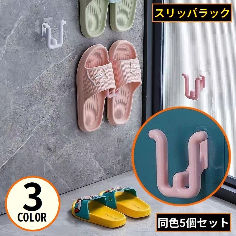 スリッパラック 5個組 サンダル収納 壁掛け 粘着式 浮かせる省スペース 軽量コンパクト 防水 バスルーム 浴室 玄関 ベランダ