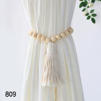 カーテンタッセル カーテン留め 1本 カーテン用品 留め紐 編み込み ロープ タッセル フリンジ 木製ビーズ インテリア 収納 カーテンホルダー 房掛