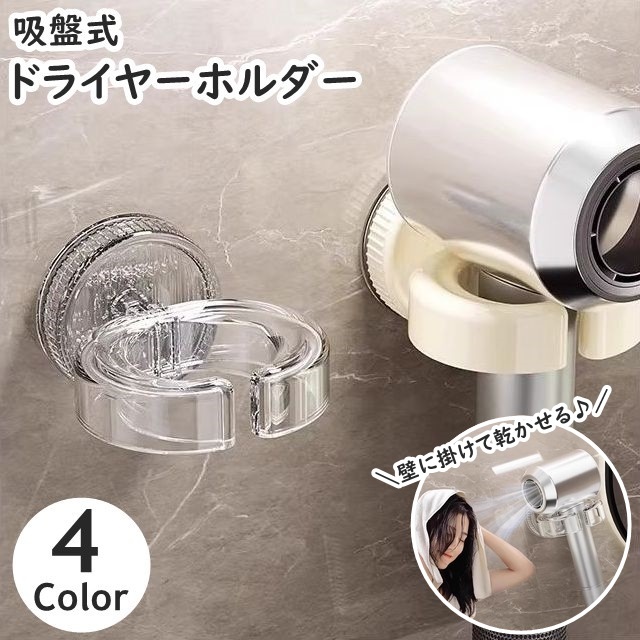 ドライヤーホルダー 吸盤式 ドライヤーフック ドライヤー収納 壁掛け 角度調節可能 穴あけ不要 洗面所 洗面台 バスルーム 日用雑貨 便利 シンプル
