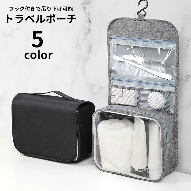 トラベルポーチ トラベルバッグ 化粧ポーチ メイクポーチ フック付き 壁掛け 吊り下げ 大容量 防水 コスメポーチ 小物入れ 収納 持ち歩き メイク道